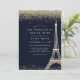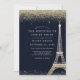 Invitation Paris Tour Eiffel Gold Confetti Mariage bleu marin