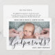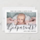 Une façon attentionnée de demander à des membres de la famille ou à des amis d'être les parrain et marraine de votre enfant est de leur offrir une carte de proposition photo personnalisée et élégante qu'ils pourront conserver en souvenir. Toutes les images et le texte sont faciles à personnaliser, y compris la citation au recto qui indique "Voulez-vous être mes parrain et marraine ?". Si vous préférez écrire votre message à la main au verso, il suffit de supprimer le texte de remerciement exemple. (ASTUCE DE PLACEMENT D'IMAGE : Un moyen simple de centrer une photo exactement comme vous le souhaitez est de la rogner avant de la télécharger sur le site Web de Zazzle.) Ce modèle d'invitation de proposition personnalisé présente une typographie minimaliste moderne, une calligraphie de style manuscrit et une photo de votre choix. Le design noir et blanc neutre en termes de sexe convient aux marraines, parrains, bébé garçon ou fille. C'est une