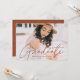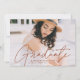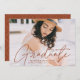 Invités Invitations pour célébrer la grade avec nos invitations élégantes à la remise des diplômes photo. Les invitations à la remise des diplômes présentent la photo du diplômé avec "Graduate" dans une superposition de script de calligraphie moderne marron en terre cuite. Personnalisez le devant de l'invitation moderne en ajoutant le nom du diplômé, le nom de l'école et l'année de fin d'études. L'invitation s'inverse pour afficher les détails de votre fête de remise de diplômes et un motif géométrique en terre cuite et pointillé blanc tendance.