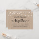 Belles lumières de chaîne de ferme rustique modernes, police de script noir sur fond de papier Kraft, annonce de mariage intime, carte d'invitation (Partagez le bonheur ensemble). C'est parfait pour votre réception de mariage et fête de célébration après le mariage. Ajoutez vos détails dans la même police / lettrage.