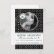 Invitations amis et famille à une fête spéciale de 16 ans pour une jeune fille avec cette élégante invitation à la soirée Poka en noir et blanc ! Téléchargez votre photo de fille d'anniversaire préférée et votre position/taille si nécessaire pour remplir la zone de cadre du cercle. Les pois noirs et blancs doux et sautés sont agrémentés d'un joli ruban et d'un arc noir et argenté à l'aspect glittère, et d'un cercle à double anneau avec un texte vert turquoise noir et gras annonçant un 16 doux. Quatre zones de texte personnalisables pour vos informations de groupe.