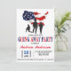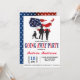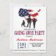 Le Drapeau Moderne Militaire S'Éloigne De L'Invitation. Le design présente des drapeaux américains et des détails de fête sur le devant et le drapeau américain couleurs arrière - plan et étoiles sur le dos. Idéal pour partir, rentrer à la maison ou prendre sa retraite. Le Modèle peut être modifié.
