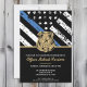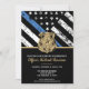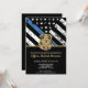 Honorer le dévouement et le travail acharné d'un nouvel agent de l'application de la loi avec cette invitation personnalisée à obtenir un diplôme de police. Doté d'un badge de police et d'un drapeau de la police avec des rayures noires et blanches audacieuses et une fière ligne bleue mince, ce dessin symbolise la force, le service et le sacrifice. L’invitation est personnalisée avec le nom du diplômé en lettres d’or, ce qui en fait un souvenir mémorable pour les amis, la famille et les autres officiers. Parfait pour célébrer un diplôme, une promotion ou un jalon dans la carrière d’un officier de police. Invitation vos invités dans le style et montrer le soutien pour le nouveau membre de la communauté mince ligne bleue.
