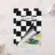 Coin en à damiers noir et blanc avec voiture vintage pour la retraite.