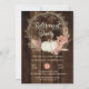 Citrouille blanc et chic de campagne avec le blush séché à la terre cuite rose hydrangea floral avec la pampas et d'autres herbes séchées orné de la couronne de brindilles "Retraite Party" conception sur un arrière - plan en faux bois teinté foncé. Ce design composite boisé rustique de Holiday Hearts Designs (droits réservés).
