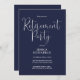Cette invitation de fête de retraite en script bleu marine peut être personnalisée avec toutes vos informations spéciales de célébration. Conçu par Thisisnotme©