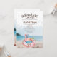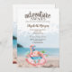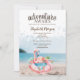 Flamingo rose mignonne sur la plage tropicale. Belle invitation qui peut être customisée avec votre nom. Sélectionnez le bouton "personnaliser" pour modifier le style, la couleur et la taille de la police. Invitation vos invités à lever un verre et à se joindre à la fête avec cette invitation festive.