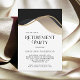 Une élégante invitation à la retraite avec une abstraite vague unique motif en noir moderne, or, et bronzer sur un arrière - plan blanc. La combinaison est étonnamment attrayante et donne une impression professionnelle. Personnalisez le modèle de texte facile à utiliser avec les détails de votre événement. Ces invitations sont disponibles sous forme de téléchargement numérique imprimé et sans papier pour votre commodité.