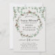 Jardin botanique rustique verdure feuillage wreath invitation à la retraite avec eucalyptus et coton sur un arrière - plan de texture crème imitation lin. Élégant type de face ouverte contrasté avec une typographie de script de style fleuri.