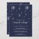 Cette carte d'invitation à l'échange de fêtes de flocon de neige marine est parfaite pour un événement de vacances moderne. La conception comporte des flocons de neige légèrement tombants.