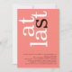 Moderne À Dernier Coral Rose Engagement Party. Un design typographique élégant, avec At Dernier en gros texte pivoté et à gauche en haut en blanc et noir sur un arrière - plan de rose corallien. La couleur Arrière - plan des deux côtés peut être changée si vous le souhaitez par Personnaliser plus loin.