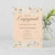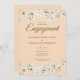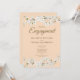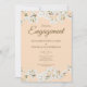 Jolie invitation à la fête de fiançailles en fleurs blanches avec une délicate floraison printanière encadrant les détails de votre fête de fiançailles en lettres d'or élégantes sur un arrière - plan couleur pêche. Personnalisez avec vos détails spéciaux. Conçu par Thisnotme©