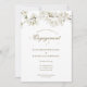 Élégante invitation à la fête de fiançailles en fleurs blanches avec des fleurs de printemps délicates encadrant vos détails fiançailles en lettres d'or élégantes. Personnalisez avec vos détails spéciaux. L'inverse présente des pétales de fleurs blanches éparpillées. Conçu par Thisisnotme©