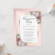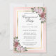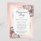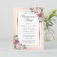 Élégante invitation personnalisée aux fiançailles florales rose et or avec roses roses blanches entourant un cadre doré. Éléments correspondants disponibles. Personnalisez facilement en ligne aujourd'hui.