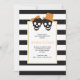 Cette adorable invitation de mariage d'été à la plage présente quelques crânes jumelés à des rayures noires et blanches. Votre texte est dans un cadre blanc avec contour doré. Le dos comprend un motif rayé noir et blanc.