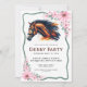 Invitation de la course de cheval moderne Derby Party avec une illustration d'un cheval de course avec jockey et motif rayé sur le dos. Tous les éléments de texte peuvent être changés afin que ce design puisse être utilisé pour d'autres événements aussi : faire-part de mariage équestre classe, fête d'anniversaire de cheval, fête de montre de derby, ouverture de grange de cheval et plus encore. Arrière - plan, la couleur de l'illustration et les couleurs du texte peuvent être changés à l'aide de l'outil de conception!