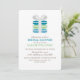 Les invitations élégantes et chic présentent une jolie illustration vectorielle de six biscuits macarons brun, beige et bleu ou aqua français dans une boîte-cadeau avec un arc sur le dessus. Visitez notre magasin pour plus d'options de couleurs et de produits assortis.