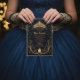 Cette Quinceañera Party Invitation a de beaux détails or dans les coins avec une belle couronne artistique dans le centre. Les couleurs sont dans l'ensemble bleu marine et or. Et beaucoup de place pour remplir tous les détails merveilleux pour une fête de coing glorieuse.