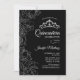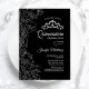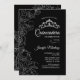 Quinceanera Florale Blanc Noir Invitation de fête d'anniversaire. Design moderne minimaliste avec accents de dessin botanique et police de script de typographie. Carte invitation simple et branchée, parfaite pour une élégante célébration féminine 15ème anniversaire. Peut être customisé à n'importe quel âge. Invitations Zazzle imprimées ou téléchargement instantané modèle imprimable numérique.