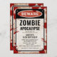 Invitation Parti zombie avec signe BEWARE et taches de sang