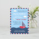 Planification d'une partie de baby shower nautique de thème ? Invitez vos amis et famille avec cette invitation nautique chique et élégante de baby shower ! Elle a un petit voilier mignon avec une voile rayée colorée de motif et une étoile du côté du conseil, flottant à travers l'océan. Il y a une mouette volant autour dans les nuages. Une palette colorée du rouge, du blanc et du bleu. Personnalisez facilement avec vos détails de partie.
