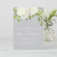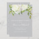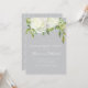 Une invitation de partie de fiançailles avec une belle disposition des fleurs blanches de pivoine d'aquarelle et une verdure élégantes et florales. Montré avec une couleur bleu-grise d'arrière - plan ce qui peut être customisé pour assortir votre thème de mariage. Choisissez juste la "personnaliser il" bouton pour voir des options supplémentaires de conception.
