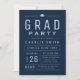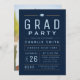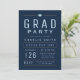Typographie moderne et minimaliste amusant invitation de la fête de graduation en bleu marine, or et blanc, Personnalisez-le avec votre propre texte et informations de fête.