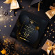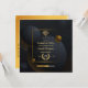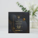 Elégante invitation de remise de diplômes virtuelle en ligne avec un thème noir et or personnalisable selon vos spécifications.