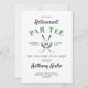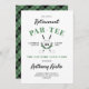 Une invitation à la retraite sur le thème du golf en blanc et vert avec une couronne et une balle de golf et des clubs de golf croisés.