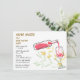 Les images d'aquarelle d'une bouteille de vin rouge versant dans un verre de vin sont les caractéristiques du côté droit de cette invitation de partie d'échantillon de vin. Derrière la bouteille et le verre de vin les images sont or feuillu et des images vertes de feuille. Votre texte fait sur commande est à l'aile gauche dans l'or foncé et le noir. Le dos de l'invitation est un arrière - plan assorti de gradient d'or qui est rempli de lumière. Unique et mémorable !