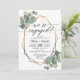 Il s'agit d'une belle invitation à la fête de fiançailles mariages avec eucalyptus et or géométrique cadre design.