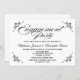 © Designs socialites. Notre belle calligraphie "Engagement Party" et éléments de design, avec du texte noir sur un arrière - plan blanc, ajoutent une touche d'élégance simple à cette invitation de fiançailles. Remplacez facilement notre texte modèle pour votre dîner. Tous les éléments de conception peuvent être déplacés, redimensionnés, tournés ou supprimés selon votre goût. Pour customiser les éléments de conception, appuyez sur le bouton "Customiser".