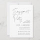 Invités Invitations pour célébrer le couple heureux avec ces invitations de fiançailles modernes et minimes en noir et blanc classique avec une photo sur le dos. La conception simple comprend des fonctions "fiançailles" en écriture manuscrite décontractée, avec les détails de votre événement alignés en bas à droite dans le lettrage moderne en noir cendres molles. Customisez le dos avec une photo de fiançailles préférée.