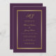 Invitation vos invités de fiançailles mariages dans le style avec cette élégante invitation monogramme personnalisée. Le design moderne présente des initiales en faux or monogramme en faux or script ainsi que tous les détails de votre mariage pour personnaliser bordé d'un cadre en faux or brillant sur un arrière - plan prune violet. Meilleurs voeux pour votre mariage et mariage ! Conçu par Susan Coffey.