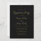 Invitation vos invités de fiançailles mariages dans le style avec cette invitation moderne. Le design simple comprend une typographie de script en faux or à la main avec tous les détails de votre parti pour personnaliser sur un arrière - plan noir. Meilleurs voeux pour votre mariage et mariage ! Conçu par Susan Coffey.