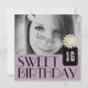 Voici une grande invitation de partie pour votre fille seize teenaged an ! Noir, blanc et un invitation coloré et à la mode assez mauve-clair ou de mauve de style avec le rétro et chic lettrage démodé. L'étiquette noire coordonnée avec le numéro 16 et une fleur blanche simple le finissent bien et aident à équilibrer la photo de compensation. Téléchargez votre propre photographie préférée de votre adolescent (sembler grands en noir et blanc !) et personnalisez le verso avec vos détails de partie.