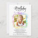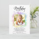 L'avant de l'ANNIVERSAIRE INVITATION comprend une aquarelle couleur Unicorne RAINBOW Abstraite ombre PASTEL cadre et un mince carré de PARTIES SCINTILLANT OR autour de la PHOTO.