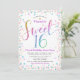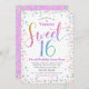 "Bonne Douce 16". Voici une excellente façon de faire en sorte que votre fille puisse encore célébrer son anniversaire avec tous ses amis. Envoyez cette invitation de soirée virtuelle personnalisée, étonnante, pétillante, girly, festive, moderne et festive pour un événement à retenir. La typographie de script de parties scintillant arc-en-ciel, ainsi que les festifs confettis turquoise, rose violet et or, recouvre un arrière - plan blanc. Personnalisez le texte personnalisé avec le nom de votre fille ainsi que d’autres détails du parti. Idéal pour la fashionista en herbe qui aime la parties scintillant moderne et le glam et s'assure d'ajouter du plaisir élégant à sa fête spéciale! Des assiettes, serviettes et autres cadeaux d'anniversaire sont également disponibles dans cette collection tendance et spéciale. Il suffit de taper le nom de la fille d’anniversaire et les informations sur le lieu de la fête, et vous pouvez facilement personnaliser cette invitation d’anniversaire. S'il vous plaît, envoyez-moi un message avec toute question ou demande.