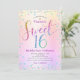 anniversairesweet sixteenor rose violet turquoise16 ansparties scintillant arc en cielécriture calligraphique manuscritepoints de confettiglamour girlyfashionistasimple moderne design fun bold