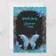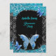 Vous cherchez un produit d'invitation étonnant pour votre 15e anniversaire de fête de fille? Ne cherchez pas plus loin que ce design qui contient des éléments de parties scintillant, d'arc, de noir et bleu, de turquoise et de papillon. Cette invitation exhale une élégance sophistiquée avec son parti branché Quinceanera à l'élégance moderne. La parties scintillant verte turquoise ajoute une touche de brillant élégant à votre fête. Vous pouvez le customiser avec vos informations et l'utiliser pour Quinceanera ou Sweet 16 party. Ne manquez pas cette occasion de fêter votre 15e anniversaire avec style avec cette invitation classe !
