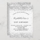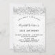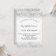 Une invitation à une soirée d'anniversaire élégante du 21ème (ou de tout âge). Un arrière - plan blanc chic à l'avant. Décoré avec de la parties scintillant en faux argent. Personnalisez et ajoutez un nom et des détails du parti. Le nom est écrit avec un script de style écrit à la main. Dos : arrière - plan faux argenté avec étincelles.