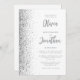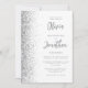 Le bord gauche de cette élégante faire-part de mariage moderne est orné d'une bordure en faux parties scintillant argenté. Le texte personnalisable combine un script gris et des polices sans serif sur un arrière - plan blanc. L'envers offre de l'espace pour les détails mariages sur un arrière - plan blanc solide, ainsi qu'un code QR que les clients peuvent scanner pour visiter votre site Web et RSVP, ce qui permet d'économiser le coût d'impression et d'envoi de cartes RSVP séparées.