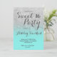 Une jolie douche à parties scintillant en faux argent moderne ombre avec bloc couleur océan turquoise Sweet 16 anniversaire invitation à la fête.