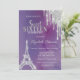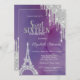 Un Sweet 16 moderne, chic et glamour avec percées de parties scintillant et diamants Tour Eiffel sur un arrière - plan violet.
