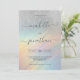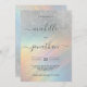 Un élégant dégradé de parties scintillant en faux argent avec typographie en écriture gris moderne et faire-part de mariage holographique irisé en arc-en-ciel peint à la main.