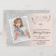 Une parties scintillant en faux argent moderne, originale et simple, sombre première communion avec invitation croisée sur un arrière - plan rose vif entièrement personnalisable. Téléchargez votre photo.