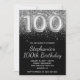 Créez votre propre 100e anniversaire moderne avec un faux numéro de bulle d'art numérique. Envoyez un message au créateur si vous avez besoin d'un invitation pour un autre âge créé. L'arrière - plan de glamour girly présente des parties scintillant décoratives en faux argent brillant sur une couleur noire solide. Les effets de texte brillant, parties scintillant et feuillu de luxe sont créés avec des éléments artistiques qui s'impriment comme une photo. Vous pouvez customiser la calligraphie fantaisiste et moderne tous les styles de police et de couleur casquette.