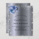 Pour un élégant 18ème anniversaire (ou tout âge). Un arrière - plan métallique style foncé faux argent. Décoré avec de la poussière de parties scintillant imitation et des fleurs bleues. Personnalisez et ajoutez un nom, un âge et des détails de la fête. Le nom est écrit avec un script de style manuscrit