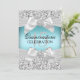 Invitation Parties scintillant bleu argent et bijoux Bow Quin