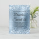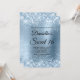 Créez votre propre invitation à célébrer le 16e anniversaire pour votre fille. Les graphiques décoratifs en parties scintillant bleu clair brillant forment une bordure supérieure et inférieure. L'art numérique arrière - plan présente une feuille de métal brossé à l'ombre bleu clair brillant. Customisez la couleur de texte noir ou les styles de police de l'invitation. Le texte "Sweet 16" est également personnalisable. Les scintillants de luxe, la parties scintillant et la feuille seront créés avec des éléments artistiques qui s'impriment comme une photo.
